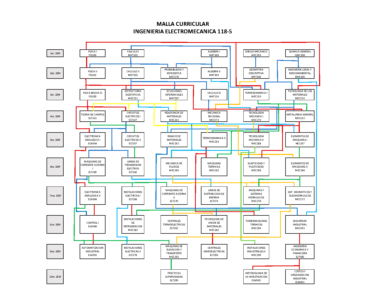 En la Gestión 2016 la carrera ha sufrido 5 modificaciones en su plan de estudio, la última modificación fue realizada en 2016, mediante Res. I.C.U. 28/2016 en la cual fueron creados los programas de formación profesional: Ing. Eléctrica (118-6), Ing. Electrónica (118-7) e Ing. Mecánica (118-8), dependiendo de Ing. Electromecánica (118-5).